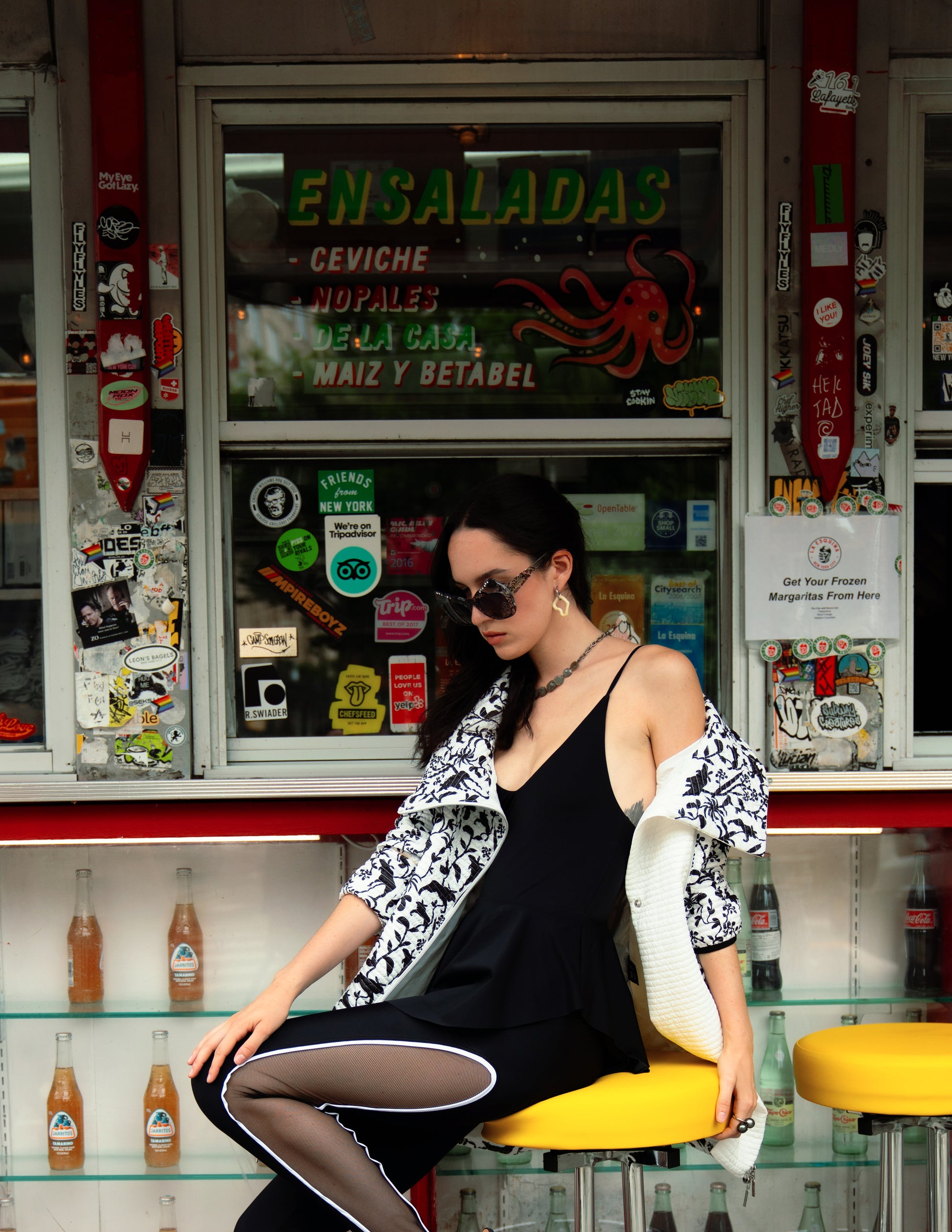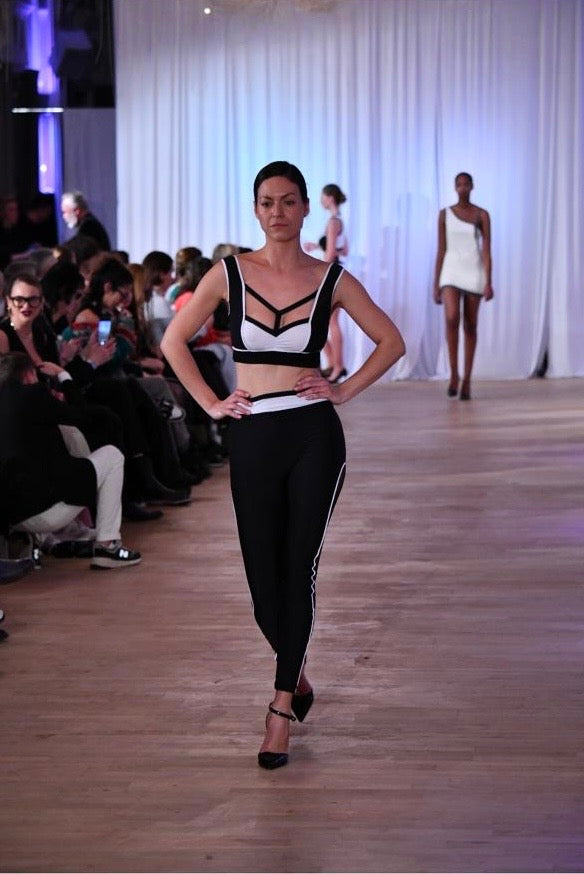 Un completo sportivo-chic che unisce sensualità e dinamismo con un tocco grafico deciso. Il top cropped in bianco e nero presenta un originale design a doppia spallina e scollatura geometrica, che valorizza il décolleté con grinta e modernità. I pantaloni aderenti in coordinato, con vita alta e bande laterali bianche a contrasto, slanciano la figura mantenendo una linea pulita e grintosa. Perfetto per eventi fashion, performance artistiche o serate urban-glam. Da indossare con tacchi o sneakers, per look versatili che non passano inosservati.