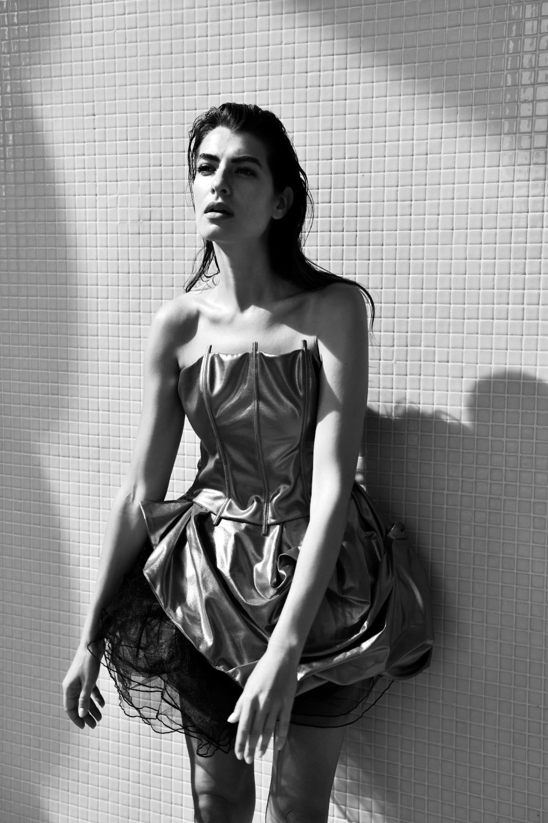 The skirt, combined with the corset, has a feminine side opening that adds a touch of sensuality and movement to every step.