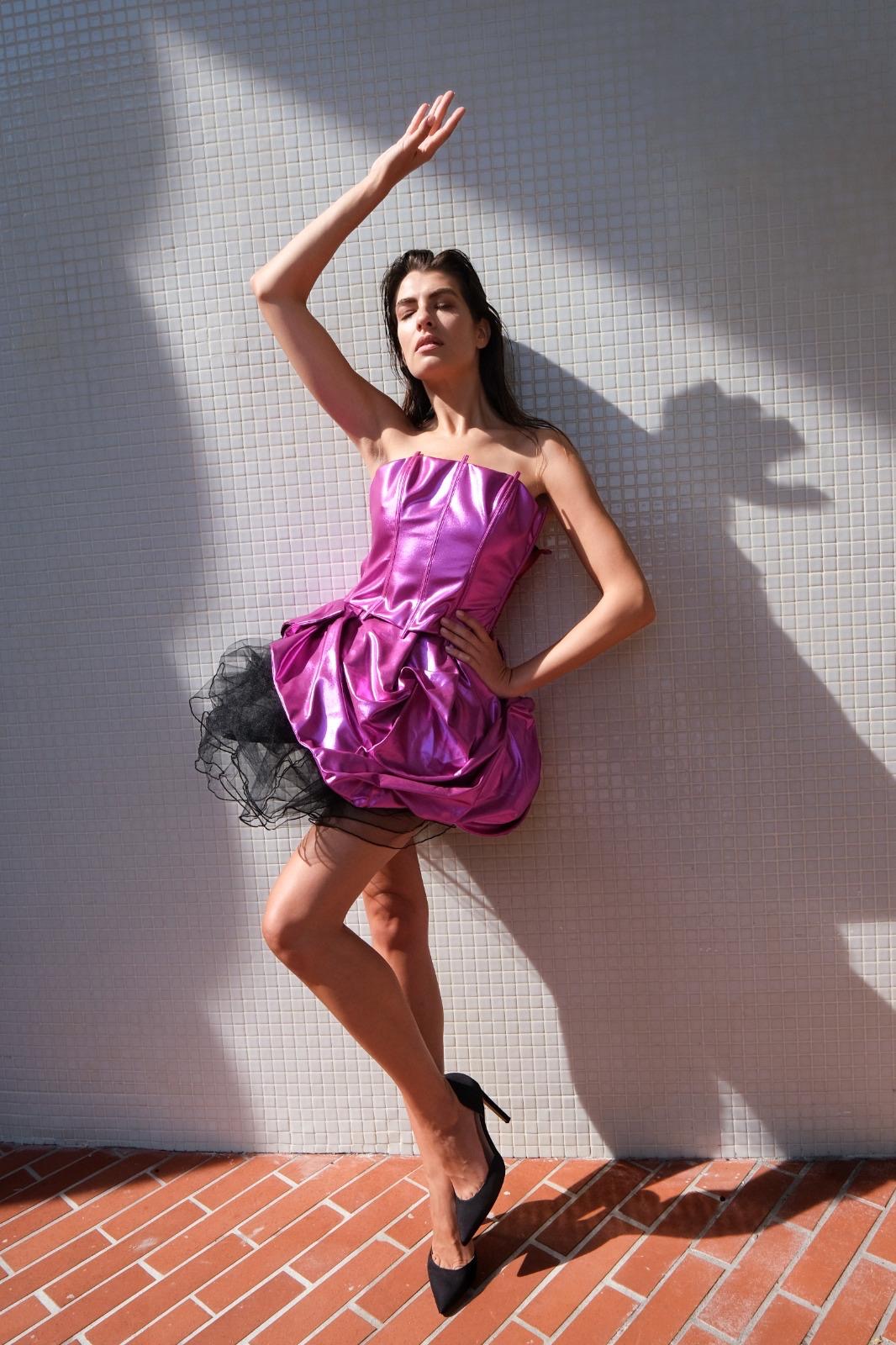 The dress is composed of 2 pieces in Lycra. A similar corset in the Hot Pink shade that has elegant details, such as finished seams and laces that allow you to adjust the fit.