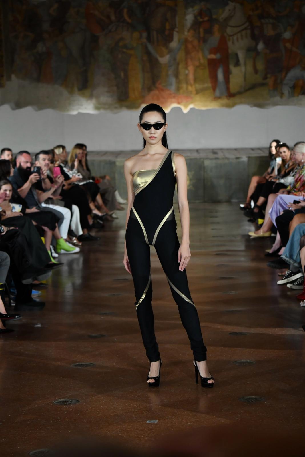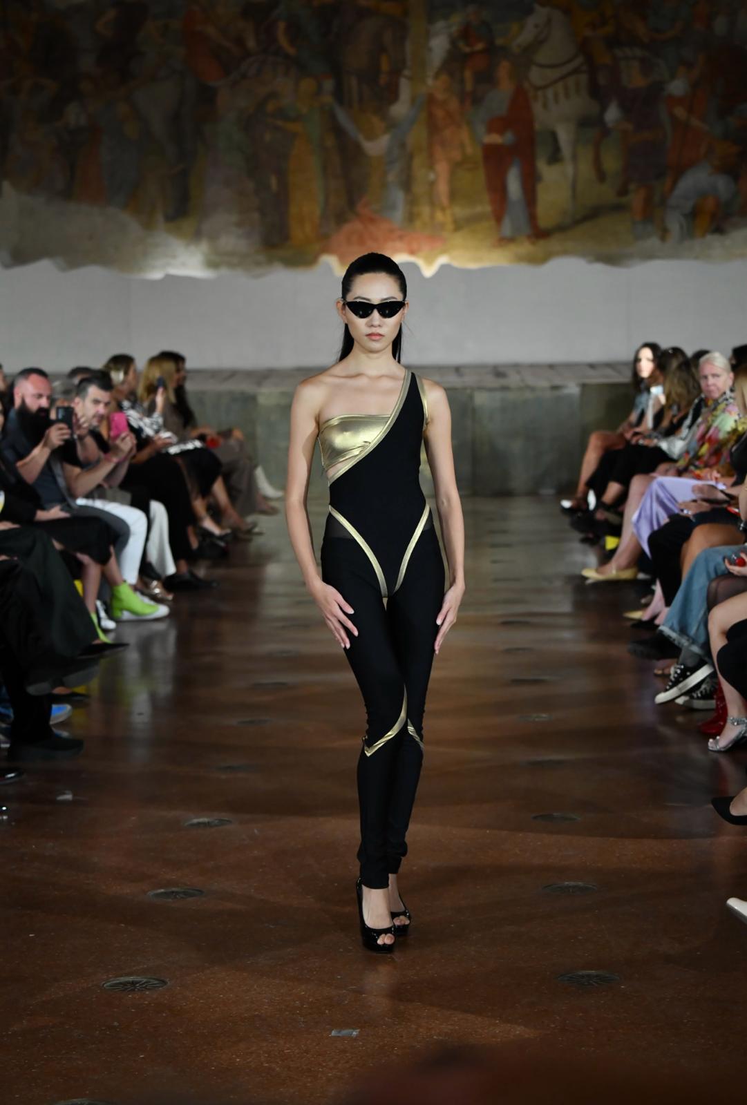Esalta le tue curve con eleganza e stile con questa tuta in lycra a mono spalla . Il design asimmetrico valorizza la silhouette, mentre l’audace combinazione di nero e oro dona un tocco glamour e sofisticato. Realizzata in tessuto tecnico elasticizzato, aderisce perfettamente al corpo garantendo comfort e libertà di movimento. Ideale per look da spiaggia, resort o eventi estivi dal mood luxury. Perfetta da abbinare a occhiali da sole bold e accessori minimal per un effetto “wow” assicurato.
