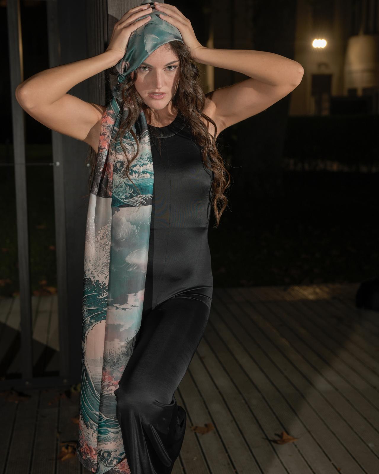 DESCRIZIONE: TUTA INTERA NERA. “La bandana /Foulard predente in foto è utilizzato a solo scopo illustrativo e non è incluso nella vendita.”